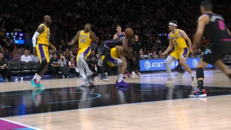 拼得很凶!阿德巴约抢球直接骑到东契奇身上 两人均有些不适